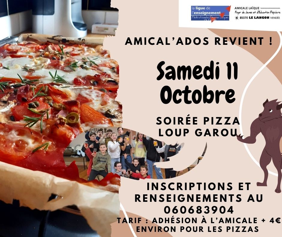 Les 5 jeunes qui ont participé à la réunion de lancement vous proposent une soirée « Pizza Loup Garou » le samedi 11 octobre.