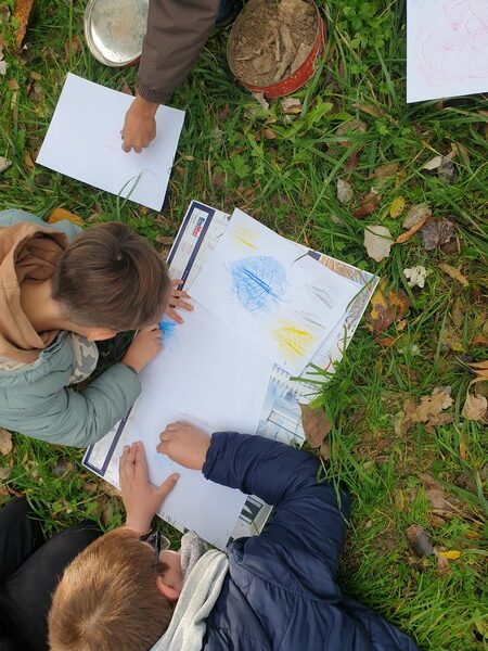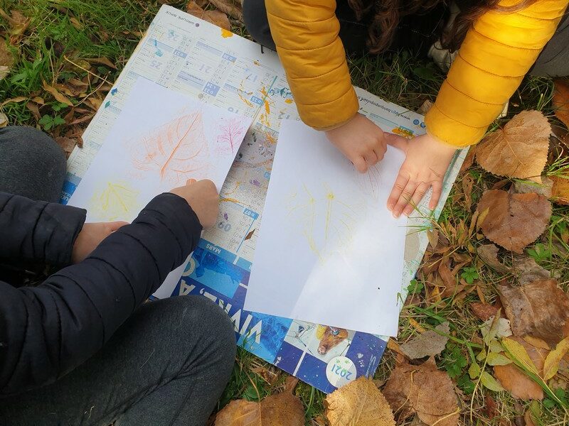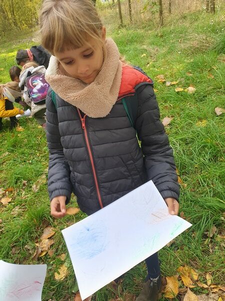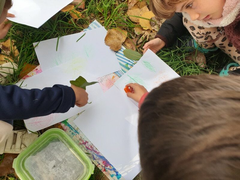 L’activité proposée avait un caractère artistique qui a bien plu aux enfants qui se sont concentrés sur la récolte de feuilles pour la décalquer grâce à un crayon de cire. Le résultat est étonnant ! Nous vous laissons admirer leur travail.