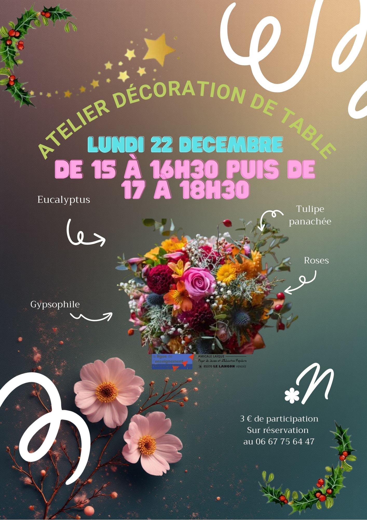 Lundi 22 décembre, dans le cadre des ateliers de « Savoirs partagés », Vincent vous propose de vous guider pour créer votre centre de table de Noël.