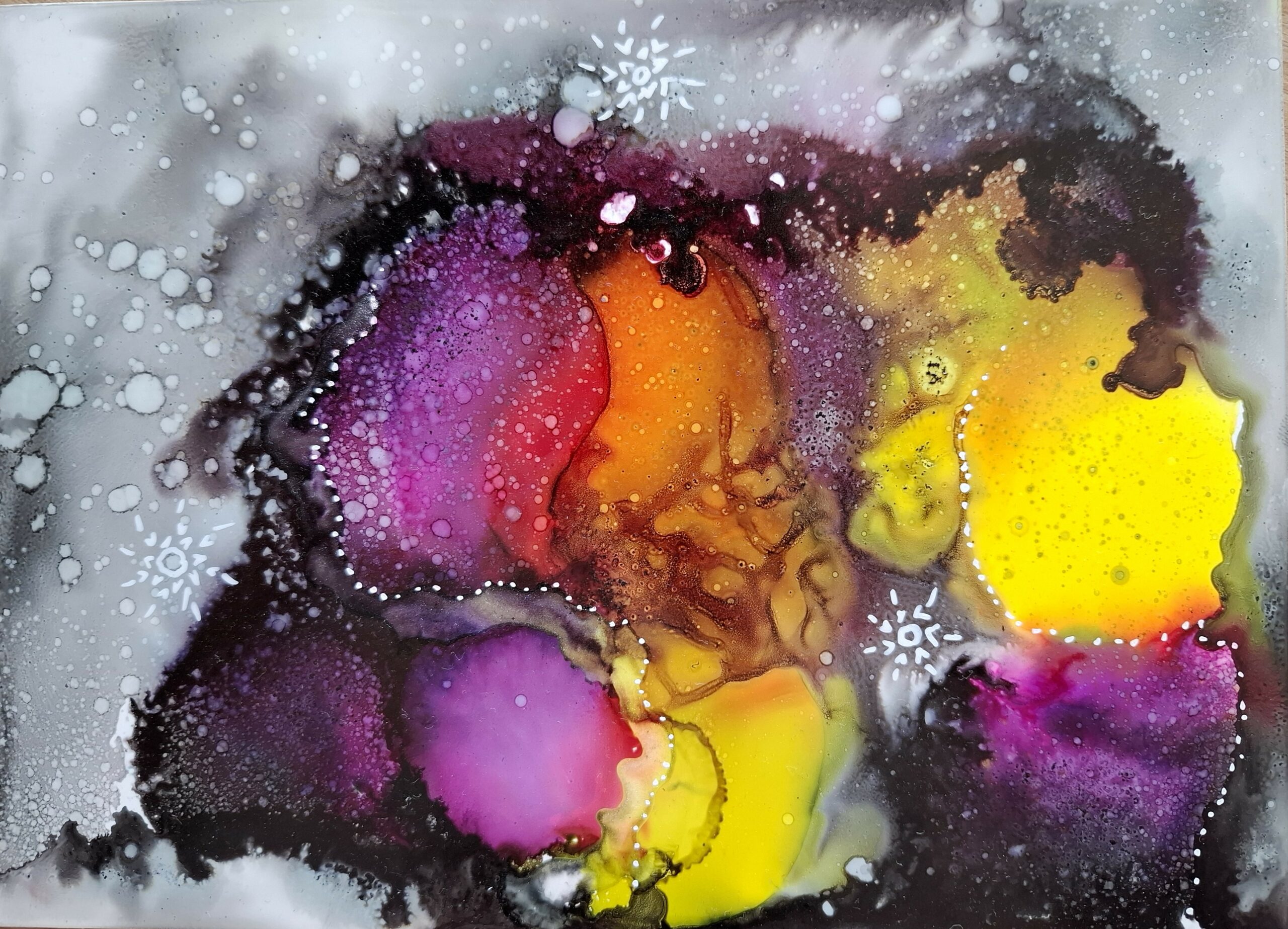 Petit retour en images sur « l’Atelier des artistes » du 24 janvier dont les thématiques étaient les suivantes : pouring, encre à alcool et linogravure ! Des découvertes pour certaines, et le plaisir de retravailler des techniques pour d’autres : mais pour toutes, l’envie de revenir à l’unanimité !!!