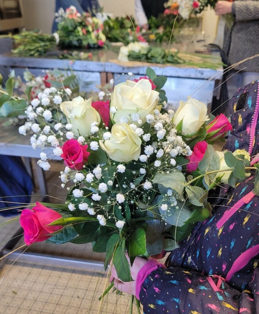 Et voici en images les créations de nos apprentis fleuristes (toutes générations confondues) qui sont repartis de l’atelier avec leur bouquet rond « bulle d’eau » afin de l’offrir (ou non !) à une personne chère à leurs yeux…
